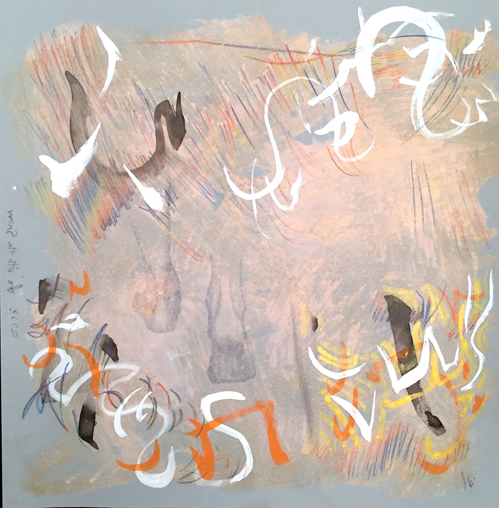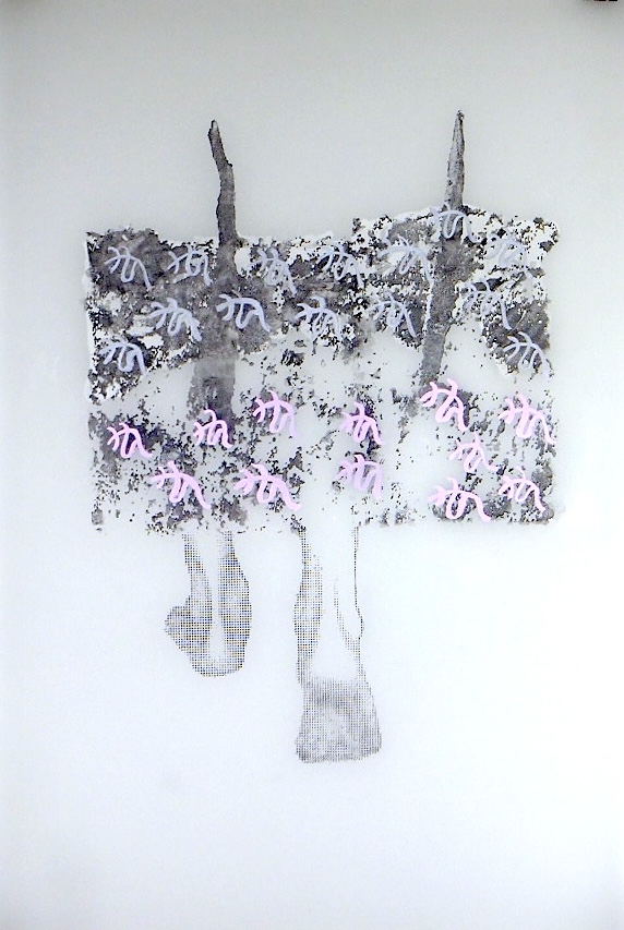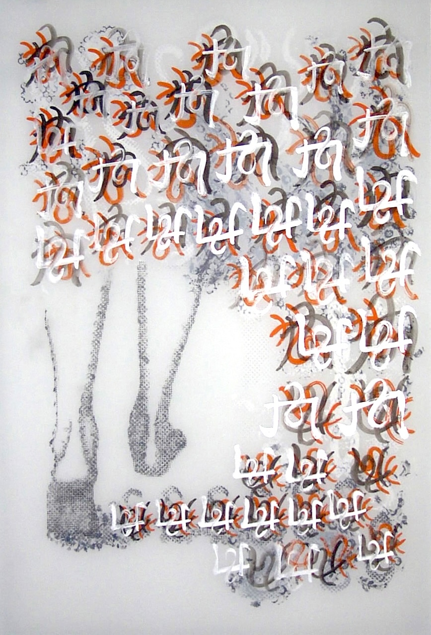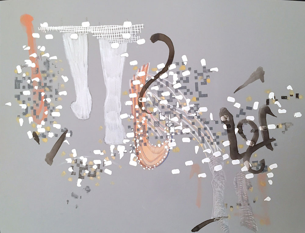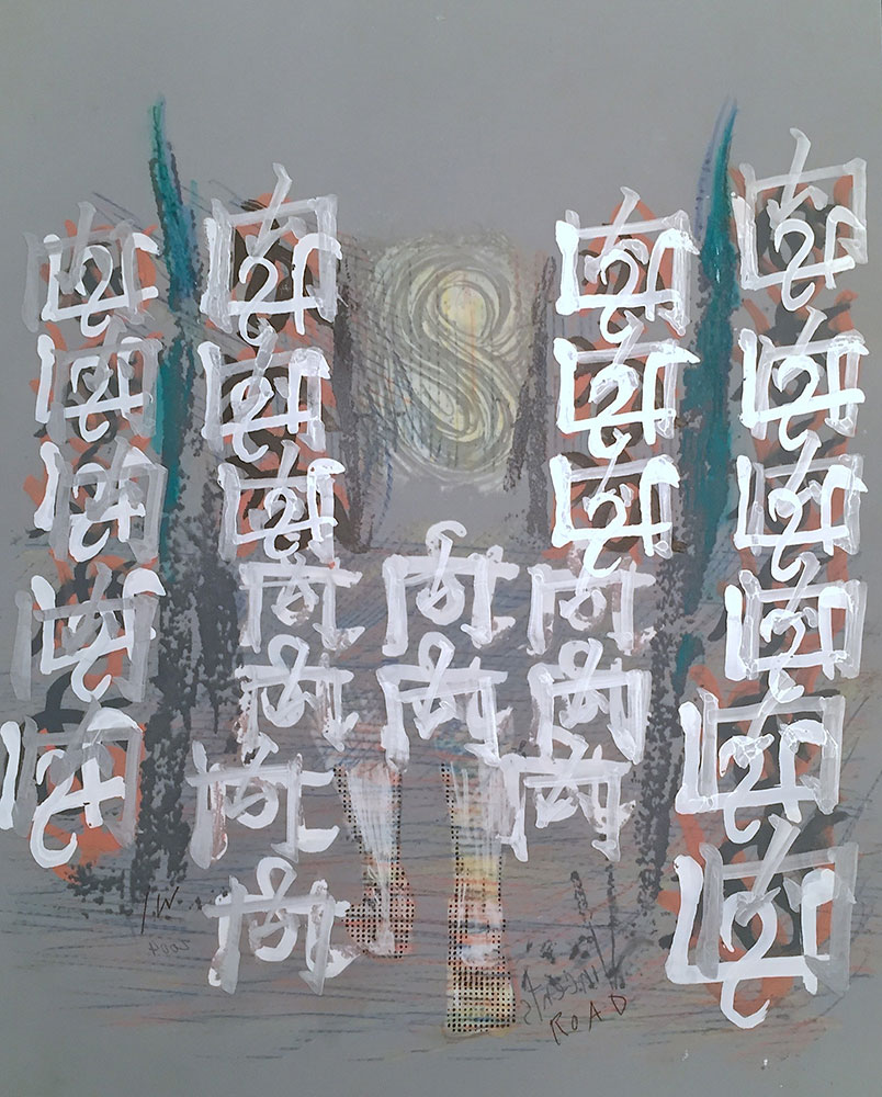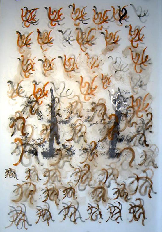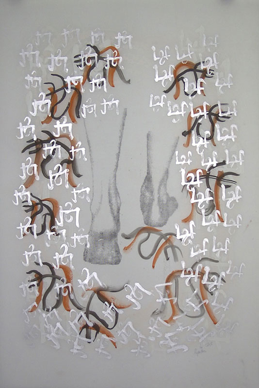 DEPARTURE’s REVERSIBLE PAINTINGS design relationships between a photographic element of human feet walking; and the Chinese ideograms for “to depart”. Over time, the Chinese character for “to depart” evolved into 4 changes, before becoming obsolete and removed from the dictionaries during the Cultural Revolution.