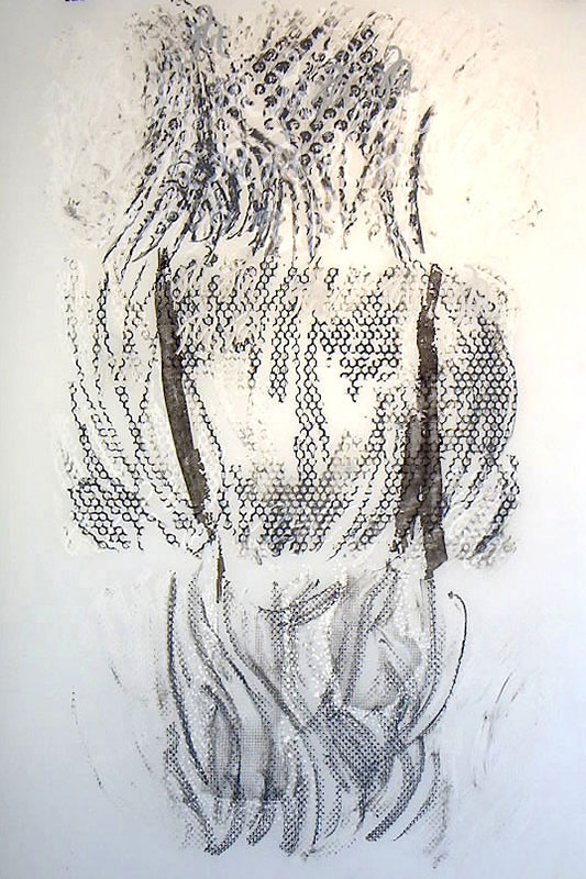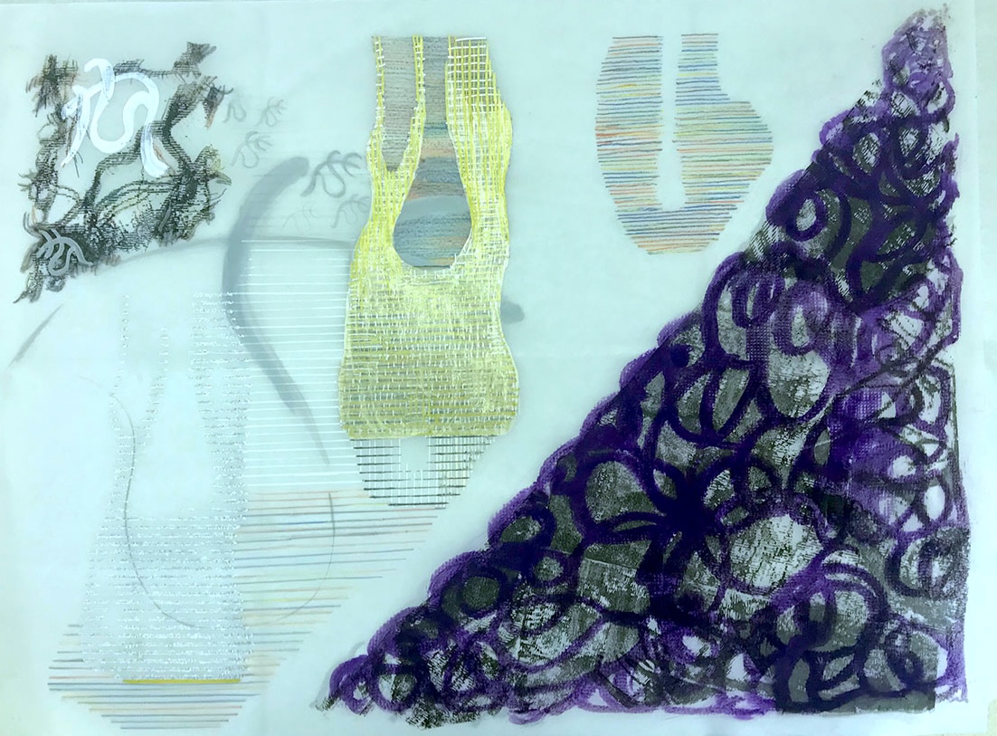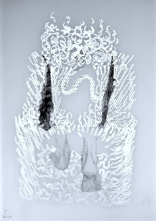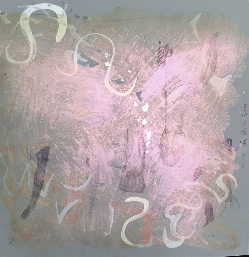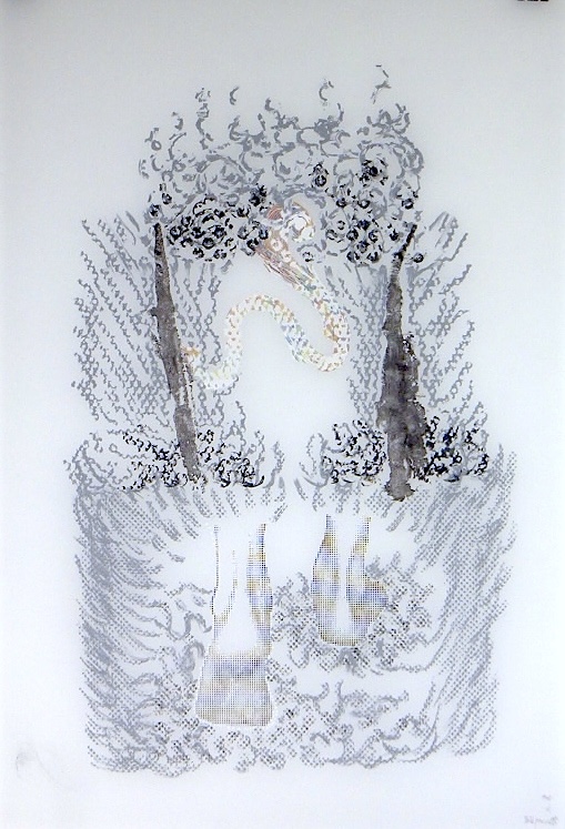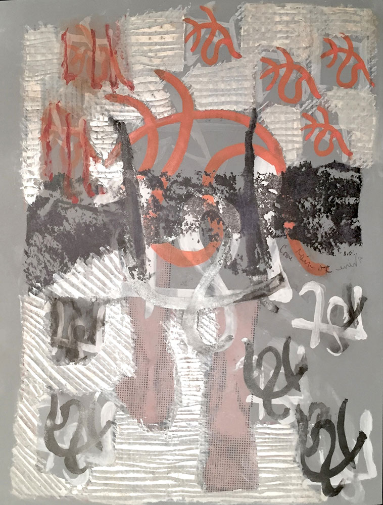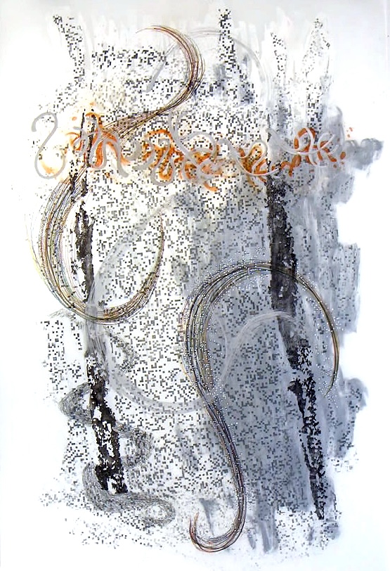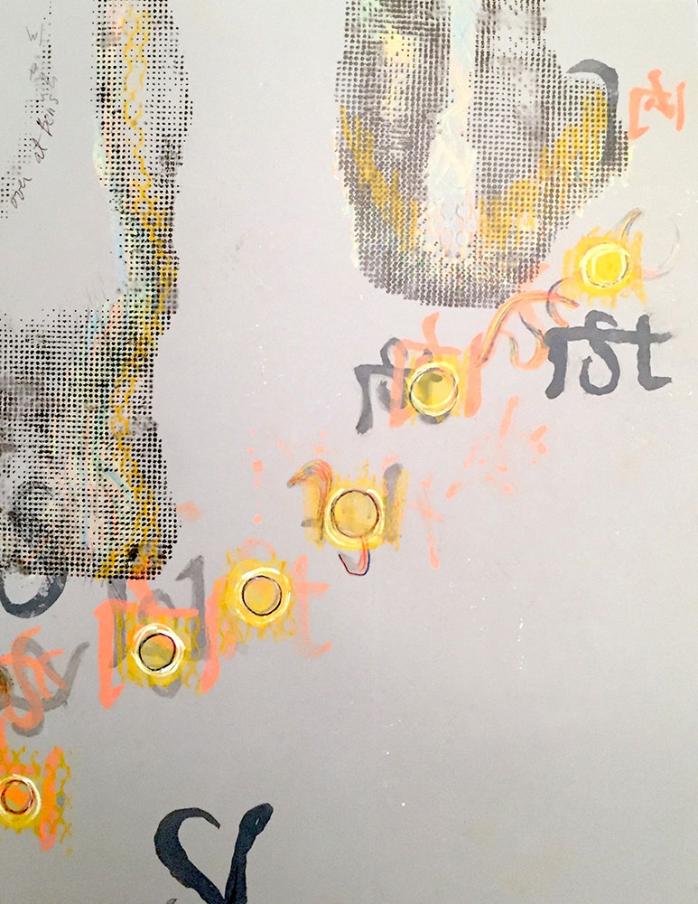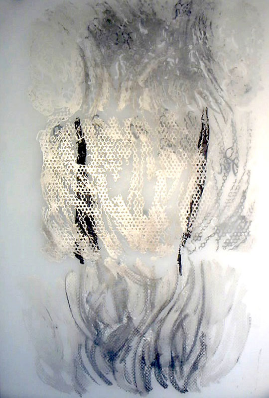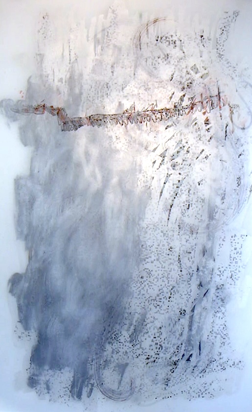 2-sided REVERSIBLE PAINTINGS: xerox transfer, mica powder, Chinese ink, mixed media on brushed mylar